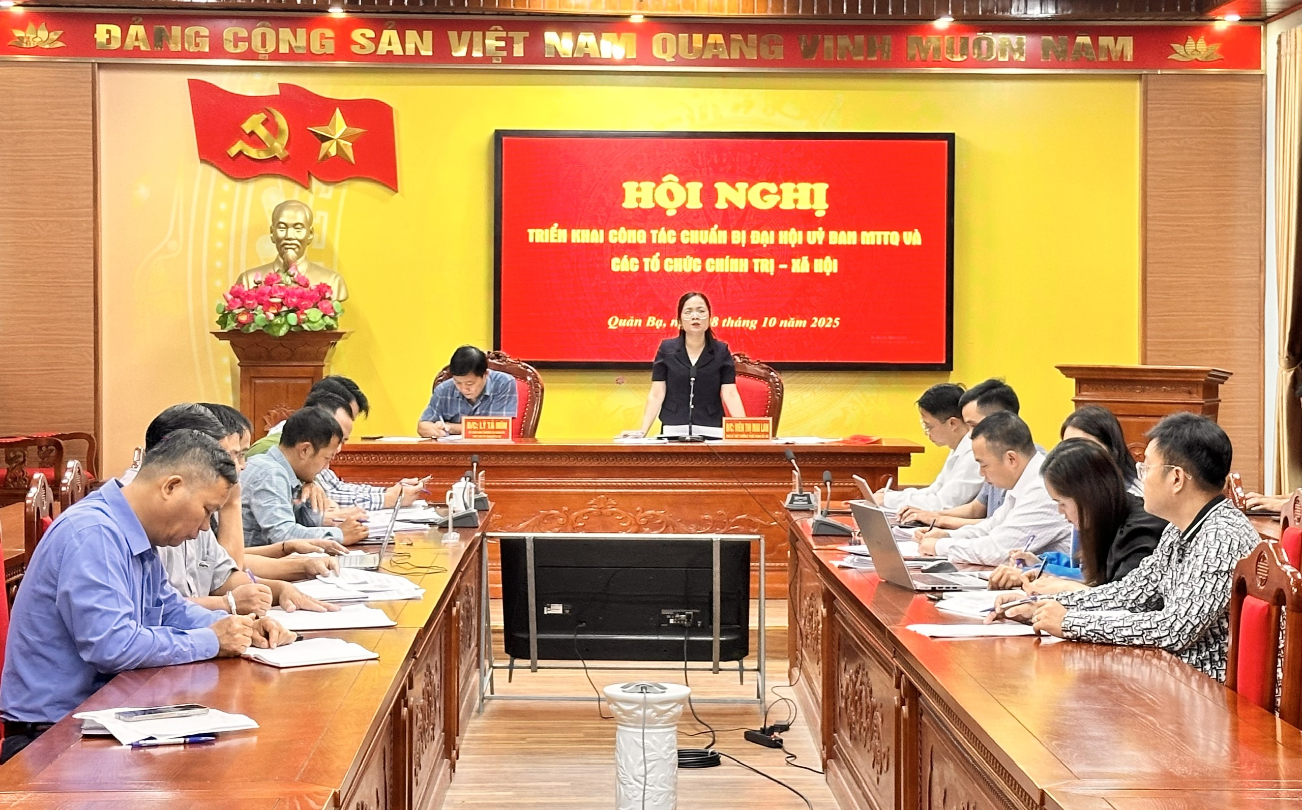 Ngày 8/10, Ban Chỉ đạo Đại hội các tổ chức chính trị - xã hội xã Quản Bạ đã tổ chức cuộc họp nhằm đánh giá công tác chuẩn bị và triển khai kế hoạch tổ chức Đại hội nhiệm kỳ 2025–2030 của các tổ chức chính trị - xã hội trên địa bàn xã. Dự và chỉ đạo cuộc họp có đồng chí Viên Thị Mai Lan, Phó bí thư Thường trực Đảng ủy xã, Trưởng ban chỉ đạo đại hội xã, cùng dự có các đồng chí trong Ban Thường vụ Đảng ủy, lãnh đạo UBND-UB MTTQ xã, đại diện các tổ chức: Hội Nông dân, Hội Phụ nữ, Đoàn Thanh niên, Hội Cựu chiến binh, các ban, ngành liên quan.