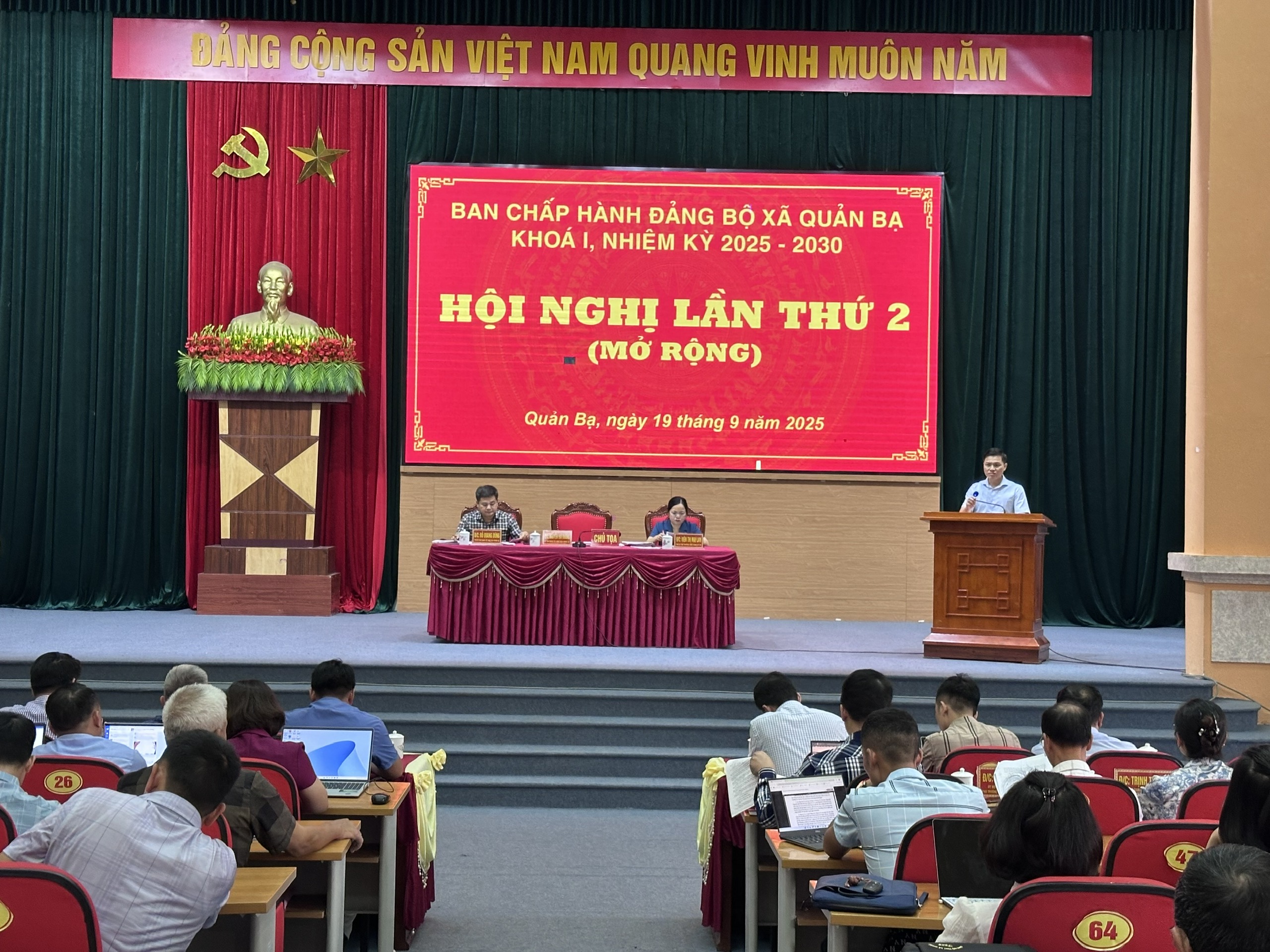 Ngày 19/9, Ban chấp hành Đảng bộ xã Quản Bạ đã tổ chức Hội nghị Ban chấp hành Đảng bộ xã khoá I, nhiệm kỳ 2025-2030 lần thứ 2 (mở rộng). Các đồng chí Nguyễn Hải Dương, Bí thư Đảng uỷ, Chủ tịch HĐND xã; Viên Thị Mai Lan, Phó Bí thư Thường trực Đảng uỷ xã; Đỗ Quang Dũng, Phó Bí thư Đảng uỷ, Chủ tịch UBND xã đồng chủ trì hội nghị. Dự hội nghị có các đồng chí Uỷ viên Ban chấp hành Đảng bộ xã; Uỷ viên Uỷ ban Kiểm tra Đảng uỷ; lãnh đạo các cơ quan, đơn vị; các đồng chí Bí thư chi bộ trực thuộc Đảng uỷ; các đồng chí Trưởng thôn trên địa bàn xã.