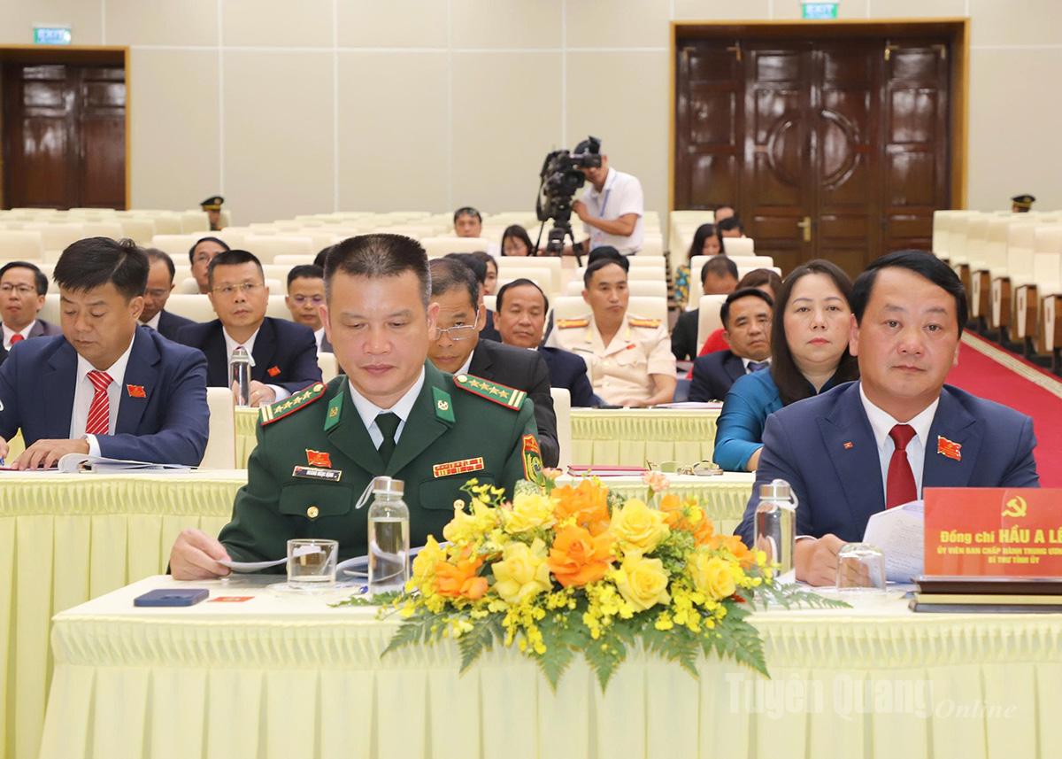 Các đại biểu cũng đã đánh giá thực trạng, quan tâm đề xuất một số giải pháp về: Đổi mới, nâng cao chất lượng, hiệu quả phong trào Toàn dân bảo vệ an ninh Tổ quốc; đấu tranh phòng, chống tội phạm, tệ nạn xã hội và vi phạm pháp luật trên địa bàn tỉnh. Thực trạng và giải pháp giảm nghèo bền vững vùng đồng bào dân tộc thiểu số tại địa phương. Phát triển kinh tế tư nhân gắn với chuyển đổi số, gắn liền với thực hiện nhiệm vụ tại địa phương. Thu hút đầu tư hạ tầng, khai thác tiềm năng du lịch gắn với bảo tồn bản sắc văn hóa dân tộc, trọng tâm phát triển du lịch sinh thái, trải nghiệm và nâng cao chất lượng du lịch địa phương. Giải pháp nâng cao chất lượng công tác văn hóa - xã hội; xây dựng con người Tuyên Quang đáp ứng yêu cầu phát triển toàn diện, bền vững. Đẩy mạnh cải cách hành chính và chuyển đổi số nâng cao năng lực quản trị, xây dựng chính quyền địa phương hiện đại, phục vụ nhân dân. Tích cực huy động, sử dụng có hiệu quả các nguồn lực, thúc đẩy đầu tư hạ tầng giao thông kết nối vùng, kiến tạo động lực phát triển kinh tế du lịch bền vững tại các xã vùng sâu, vùng xa tỉnh Tuyên Quang. Công tác bồi dưỡng, nâng cao năng lực, chất lượng đội ngũ cán bộ, đảng viên. Một số giải pháp đổi mới, nâng cao chất lượng sinh hoạt chi bộ.