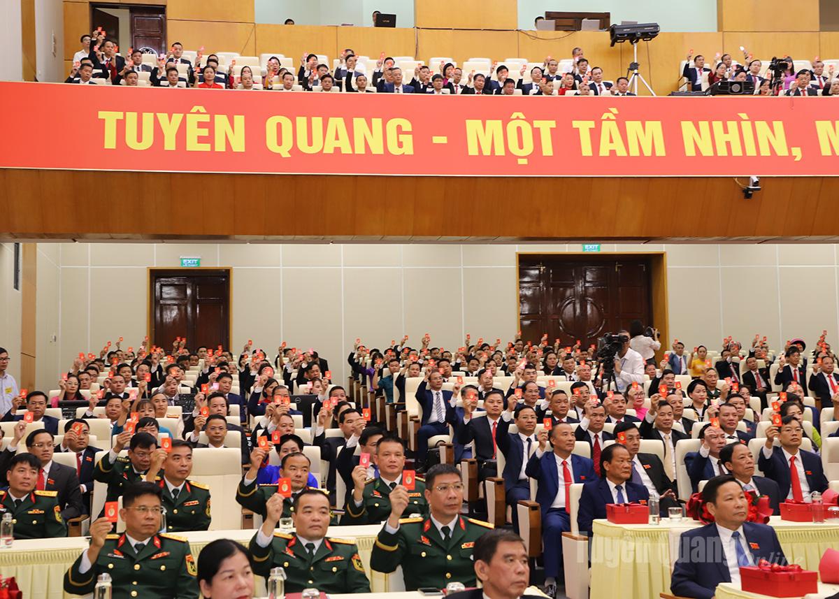 Đại hội kêu gọi các cấp, các ngành, toàn thể cán bộ, đảng viên, chiến sỹ lực lượng vũ trang, cộng đồng doanh nghiệp và Nhân dân các dân tộc trong tỉnh tiếp tục phát huy truyền thống của quê hương cách mạng, đoàn kết một lòng, nêu cao quyết tâm chính trị, bám sát các mục tiêu, định hướng, nhiệm vụ trọng tâm, đột phá, các giải pháp Nghị quyết Đại hội; đề cao tinh thần chủ động, dám nghĩ, dám nói, dám làm, dám chịu trách nhiệm, dám đổi mới, sáng tạo, dám đương đầu với khó khăn, thử thách và dám hành động vì lợi ích chung; vượt qua mọi khó khăn, thách thức, ra sức thi đua thực hiện thắng lợi Nghị quyết Đại hội đại biểu Đảng bộ tỉnh lần thứ I, xây dựng tỉnh Tuyên Quang ngày càng phát triển, góp phần tích cực vào sự nghiệp xây dựng và bảo vệ Tổ quốc Việt Nam xã hội chủ nghĩa.