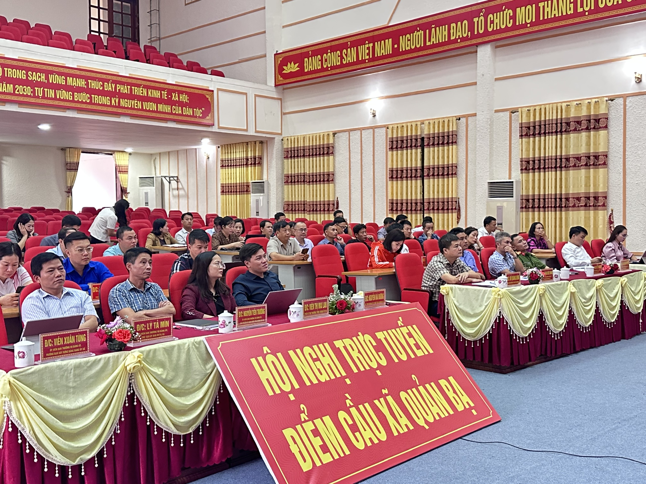 Dự tại điểm cầu xã Quản Bạ có đồng chí Nguyễn Hải Dương, Bí thư Đảng uỷ, Chủ tịch HĐND xã; đồng chí Viên Thị Mai Lan, Phó Bí thư Thường trực Đảng uỷ xã; đồng chí Đỗ Quang Dũng, Phó Bí thư, Chủ tịch UBND xã; các đồng chí BTV Đảng uỷ xã; lãnh đạo các ban, ngành, đoàn thể xã, Bí thư, Trưởng các thôn trên địa bàn.
