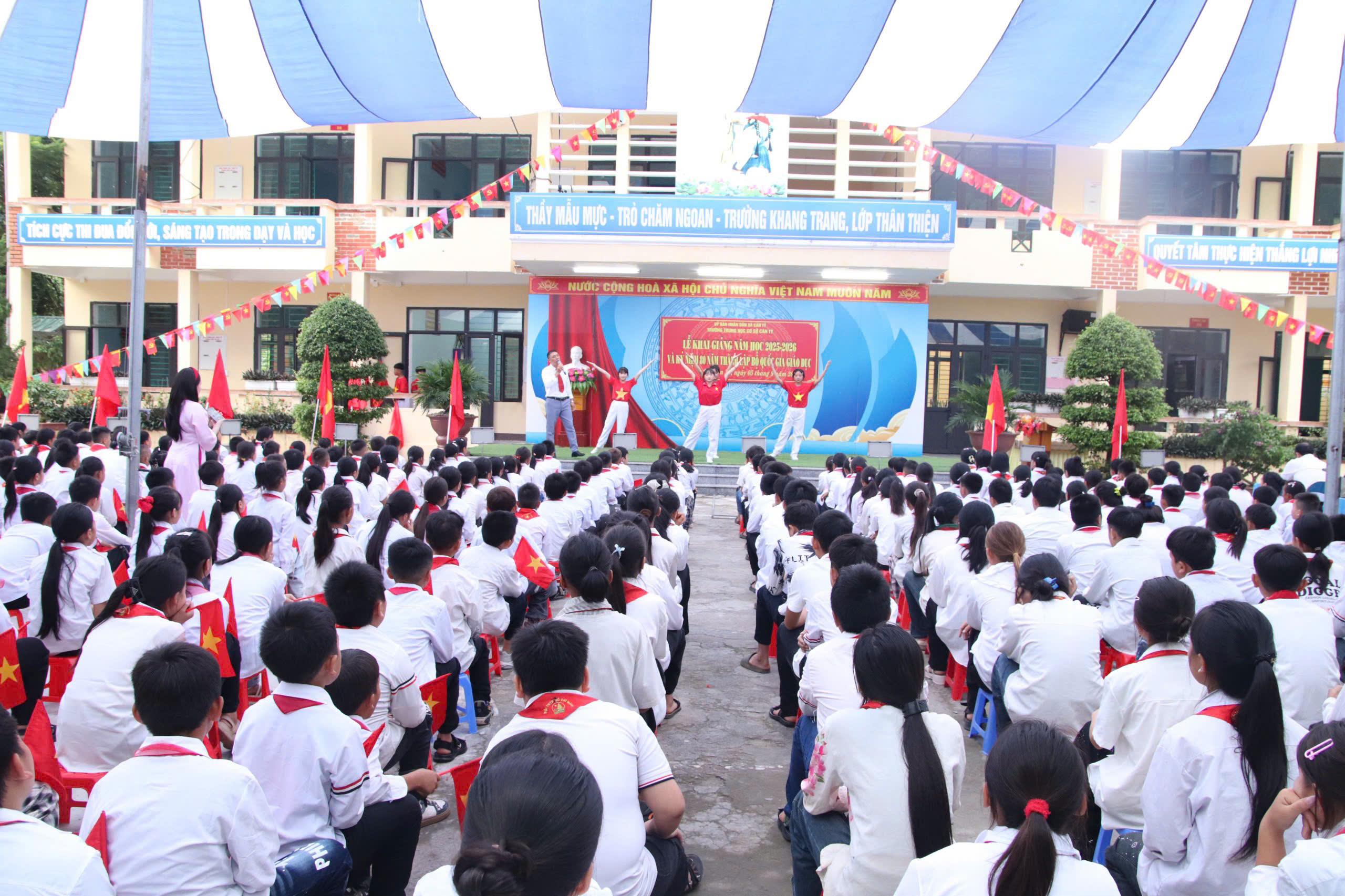 Tại trường THCS Cán Tỷ, dự lễ kỷ niệm và lễ khai giảng có đồng chí Nguyễn Minh Hùng, Uỷ viên BCH Đảng bộ tỉnh, Chánh án toà án Nhân dân tỉnh; đồng chí Phạm Ngọc Pha, Bí thư Đảng uỷ- Chủ tịch HĐND xã; đồng chí Vi Ngọc Tình, PBT- Chủ tịch UBND xã. Năm học 2025-2026, trường THCS Cán Tỷ có 12 lớp, tổng số 475 học sinh. Tại đây, đồng chí Nguyễn Minh Hùng, Uỷ viên BCH Đảng bộ tỉnh, Chánh án toà án Nhân dân tỉnh đã động viên, biểu dương những nỗ lực, cố gắng của nhà trường trao những phần quà động viên tới thầy và trò nhân dịp năm học mới.