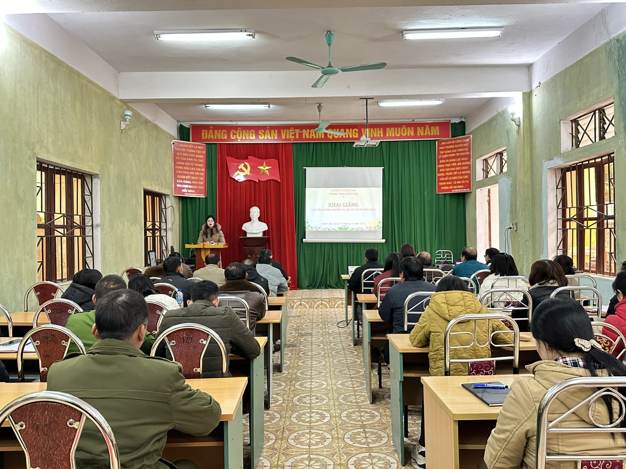 Lớp bồi dưỡng nghiệp vụ cấp ủy cơ sở năm 2025 được chia thành 7 lớp với 686 học viên bắt đầu từ ngày 31/3/2025 đến ngày 18/4/2025. Tại đây các học viên được nghiên cứu và bồi dưỡng các dưỡng nghiệp vụ công tác Đảng cơ sở gồm 6 bài: Tổ chức cơ sở đảng và thực hiện nhiệm vụ chính trị của các loại hình tổ chức cơ sở đảng. Công tác tư tưởng của tổ chức cơ sở đảng. Công tác tổ chức và công tác dân vận của tổ chức cơ sở đảng. Công tác kiểm tra, giám sát và công tác khen thưởng, kỷ luật của tổ chức cơ sở đảng. Nhiệm vụ của chi ủy, Bí thư chi bộ và nâng cao chất lượng sinh hoạt chi bộ. Phòng, chống “tự diễn biến” “tự chuyển hóa” trong cán bộ, đảng viên ở cơ sở và đi nghiên cứu thực tế tại một số xã, thị trấn trong huyện. Sau khi kết thúc khóa bồi dưỡng các học viên sẽ tiến hành viết bài thu hoạch.