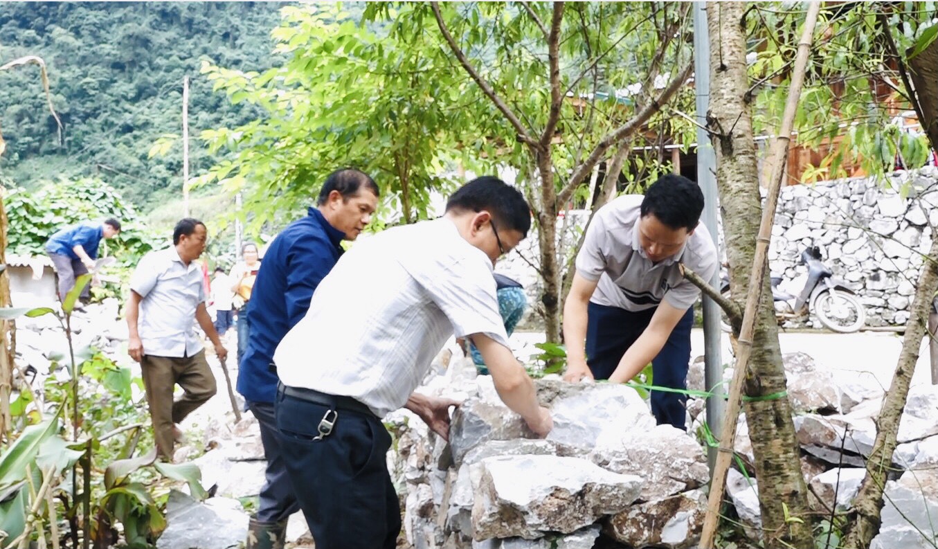 Đẩy mạnh tuyên truyền, cụ thể hoá thực hiện có hiệu quả Quy định số 144 của Bộ Chính trị theo lời dạy của Bác Hồ “Việc gì lợi cho dân, ta phải hết sức làm. Việc gì có hại đến dân, ta phải hết sức tránh”; các xã, thị trấn trên địa bàn huyện Quản Bạ đã tổ chức chương trình ra quân hướng về cơ sở bằng nhiều hoạt động thiết thực như: Tuyên truyền, hướng dẫn nhân dân xây dựng hàng rào đá; chỉnh trang nhà cửa; dọn dẹp vệ sinh khu vực dân cư; xã hội hoá lắp đặt hệ thống đèn điện chiếu sáng; cắm biển tuyến đường.