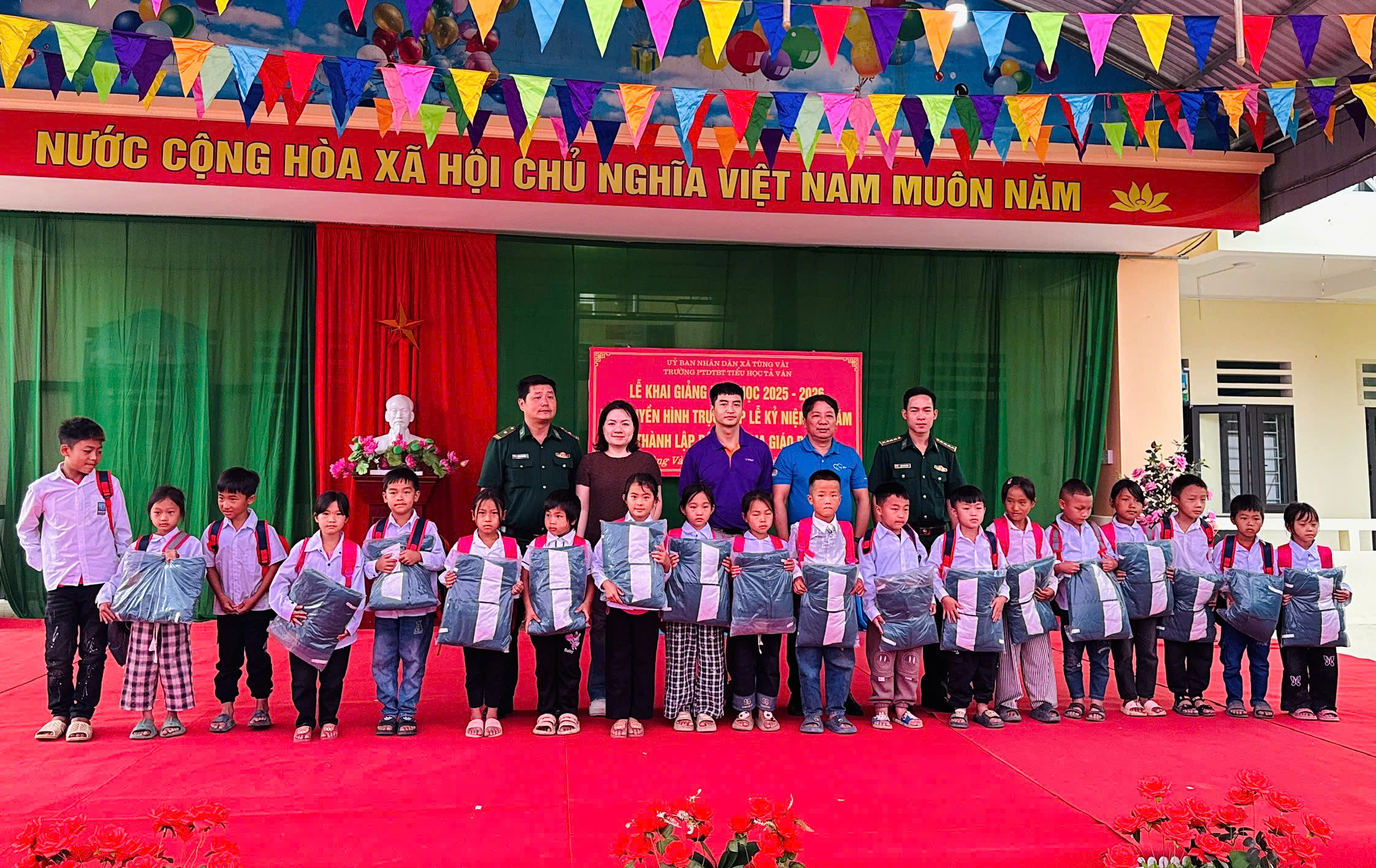 Trong không khí rộn ràng, phấn khởi của ngày khai giảng năm học mới. Ngày 5/9, dưới sự kết nối của Đồn Biên phòng Tùng Vài, BĐBP tỉnh Tuyên Quang, Quỹ khuyến học- Quỹ ngôi sao Phương Bắc của Ngân hàng Tiên phong bank và Ngân hàng TMCP Kỹ thương Việt Nam (Techcombank) đã đến trao quà cho học sinh tại trường Phổ Thông Dân tộc Bán trú (PTDT BT) Tiểu học Tả Ván, xã Tùng Vài.