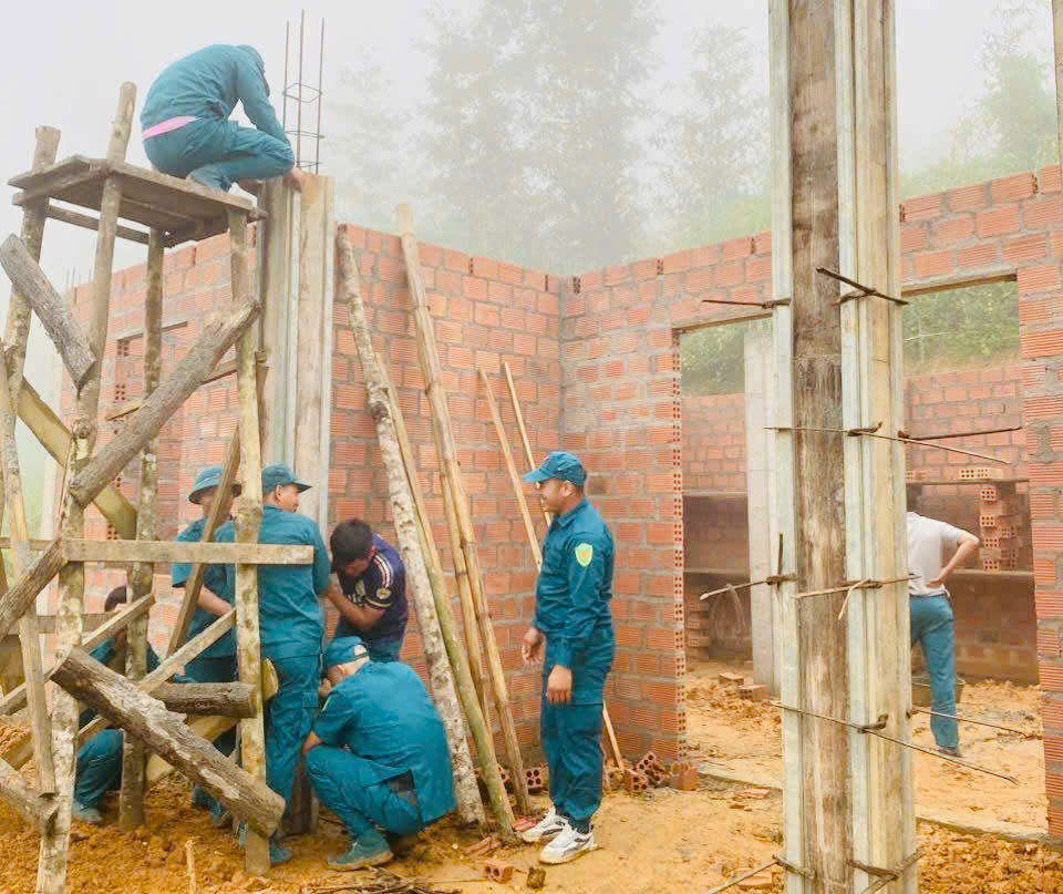 Ban chỉ huy quân sự xã Quản Bạ chung tay xây lên những mái nhà kiên cố